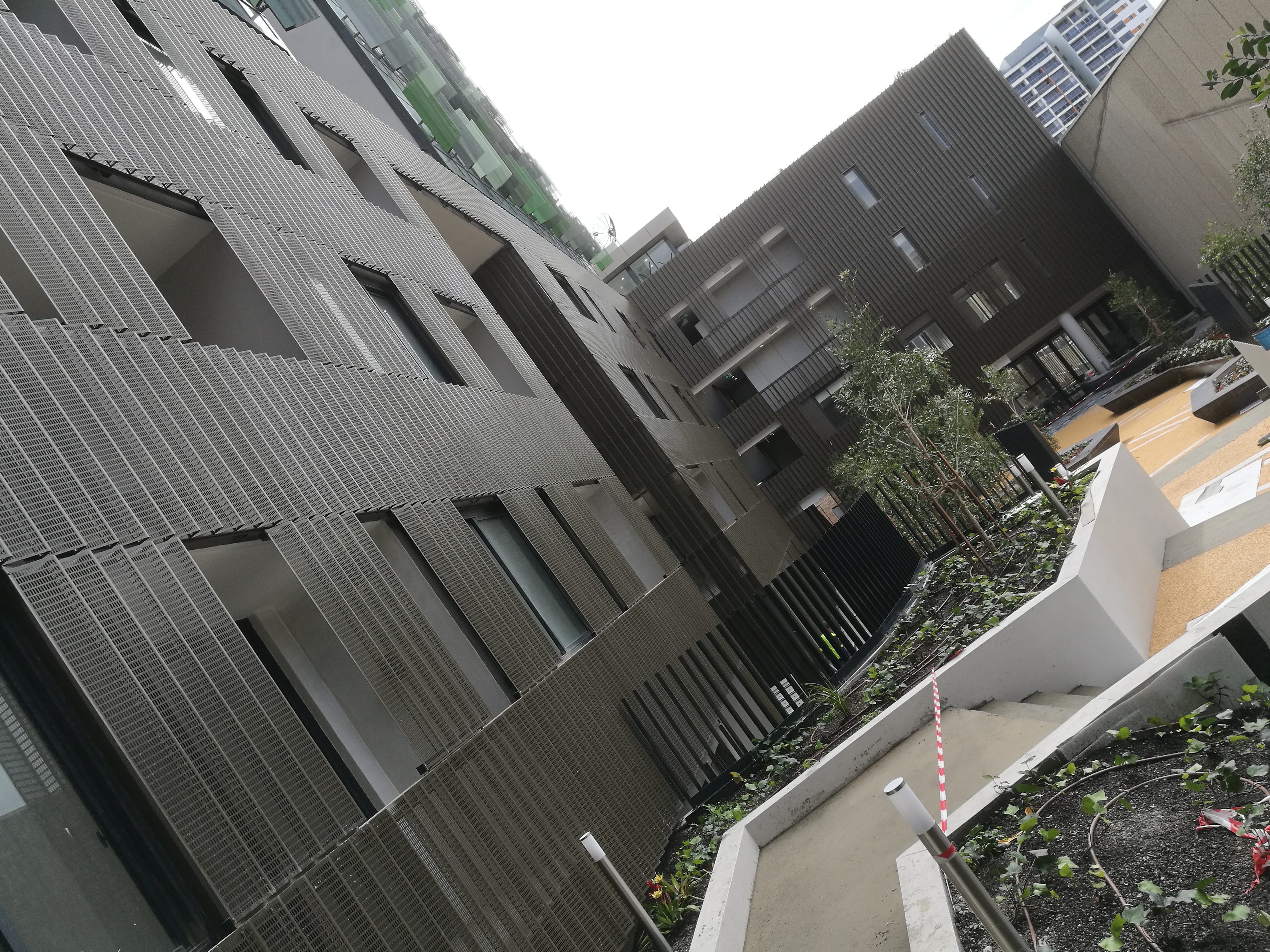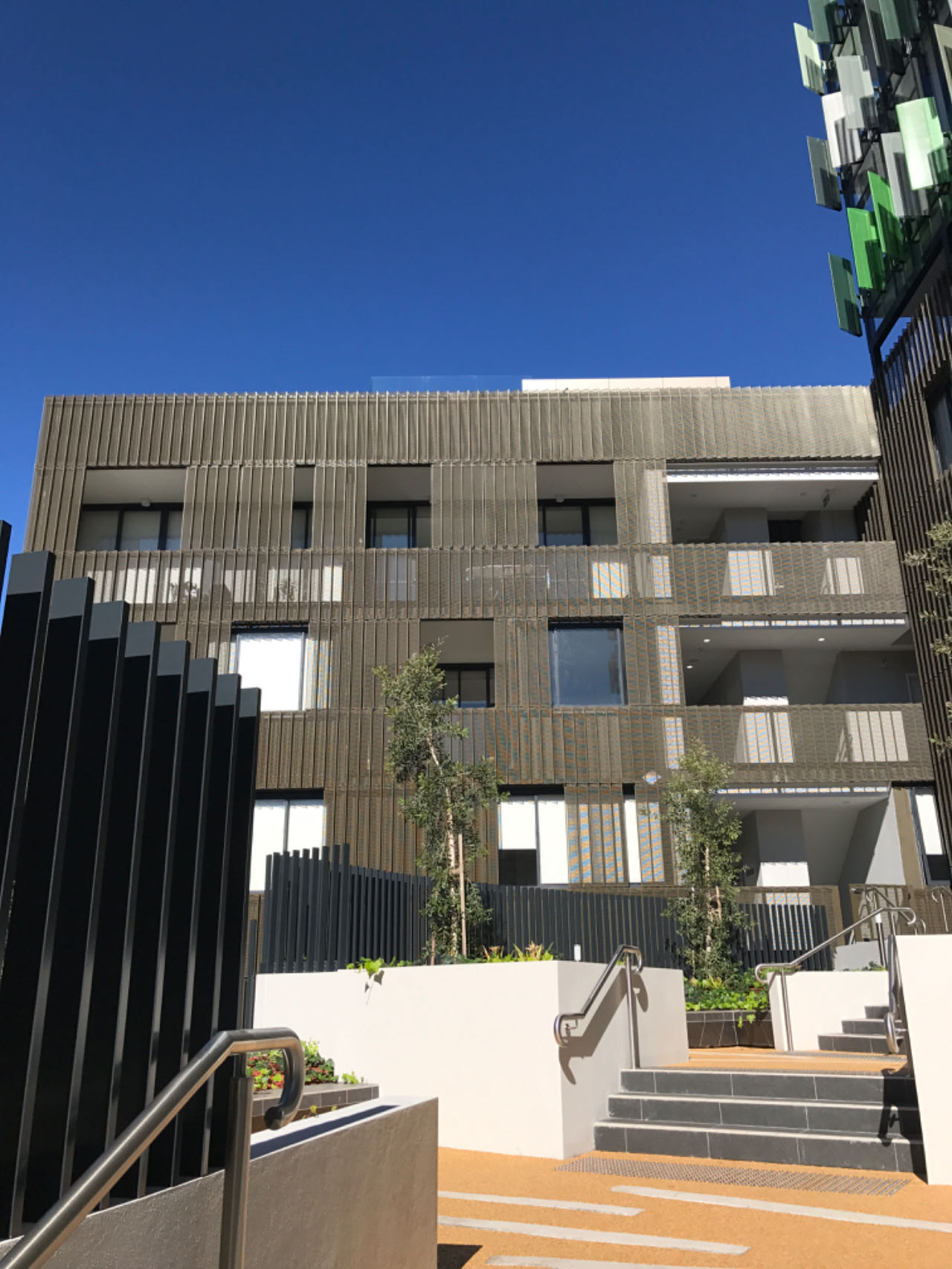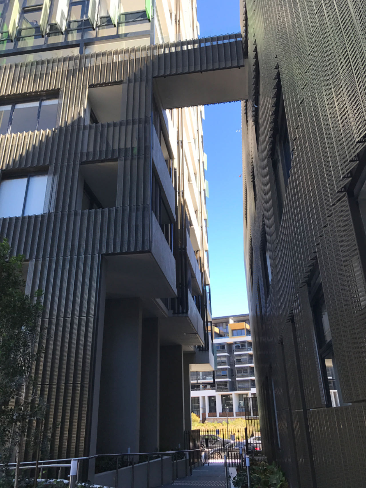 Perforated & ribbed aluminium wall cladding, metal balustrade, metal fence & gates, aluminium cladding, structural steel awning, aluminium batten wall cladding, SS handrails etc